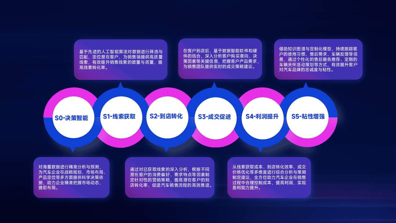 通过拓宽潜在客户来源、、、优化线索分配并提高到店转化率,,,,以增强销售效率。。。。同时,,,,利用线索数据不断优化分析模型,,,有效提升转化率,,,扩大营销影响力。。